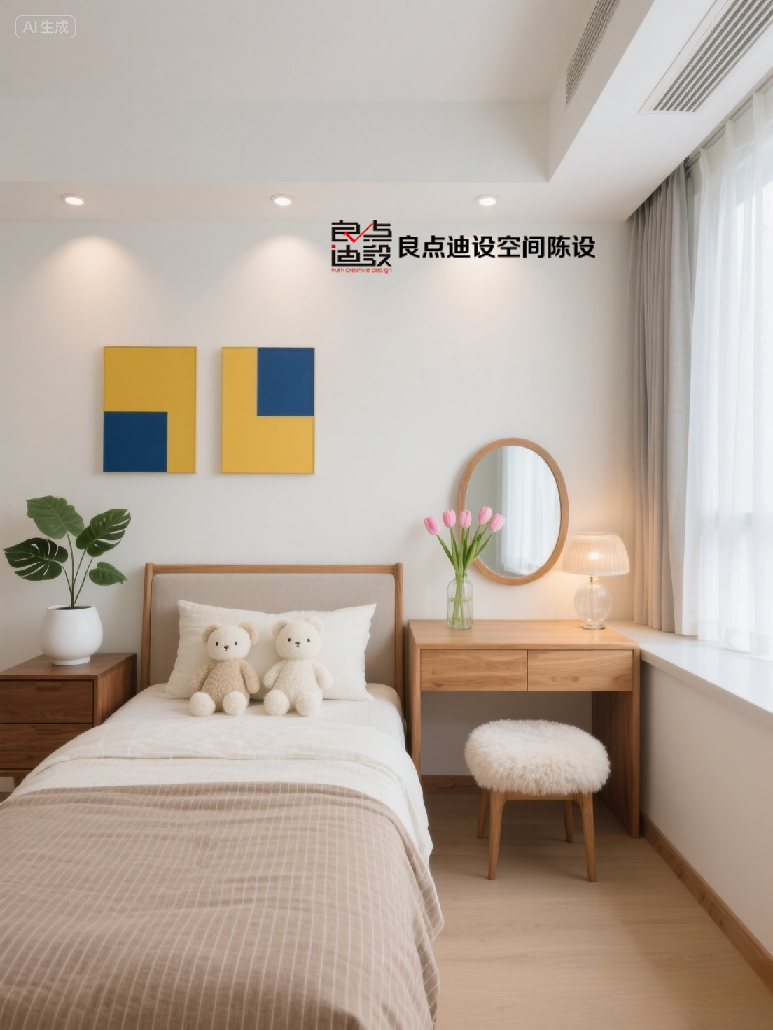 衣柜梳妝臺二合一:床尾整墻衣柜延伸出懸空妝臺,自然光化妝不踩雷?